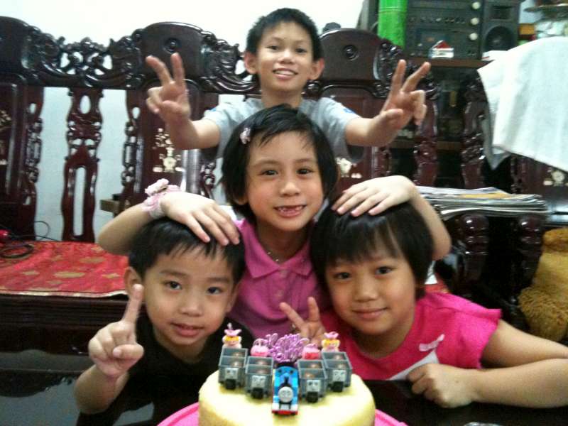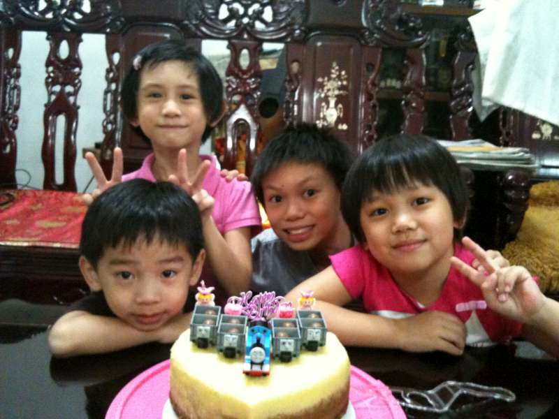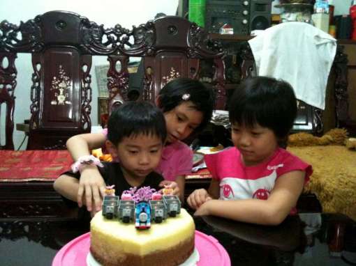 Today is Jason’s birthday and he’s four years old. The missus personally made a special cake for her prince and decorated it with some Thomas & Friends toys on top of it.