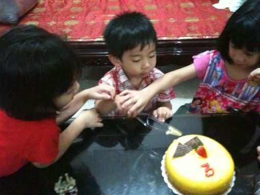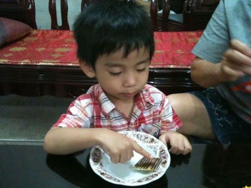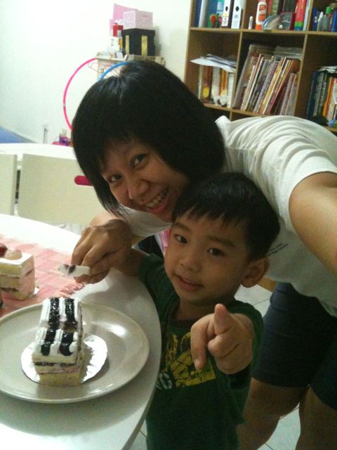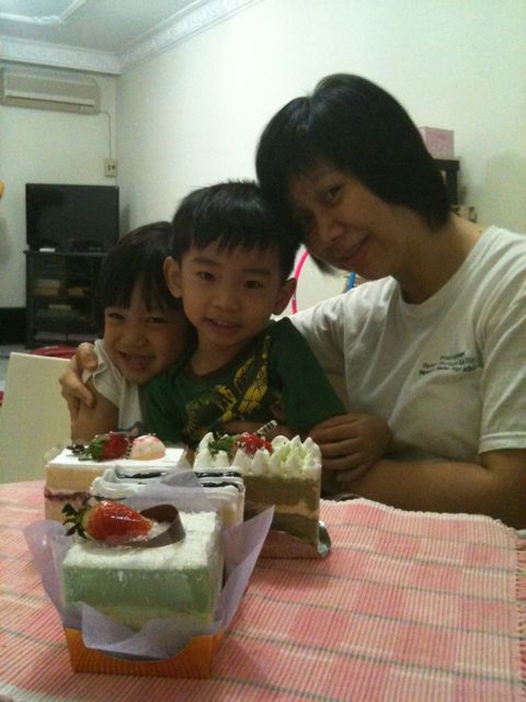 We made up for it by deciding to buy a birthday cake but when we went to the cake shop, the choices were limited and uninspired. So we decided to buy 4 slices of different cakes to liven things up.